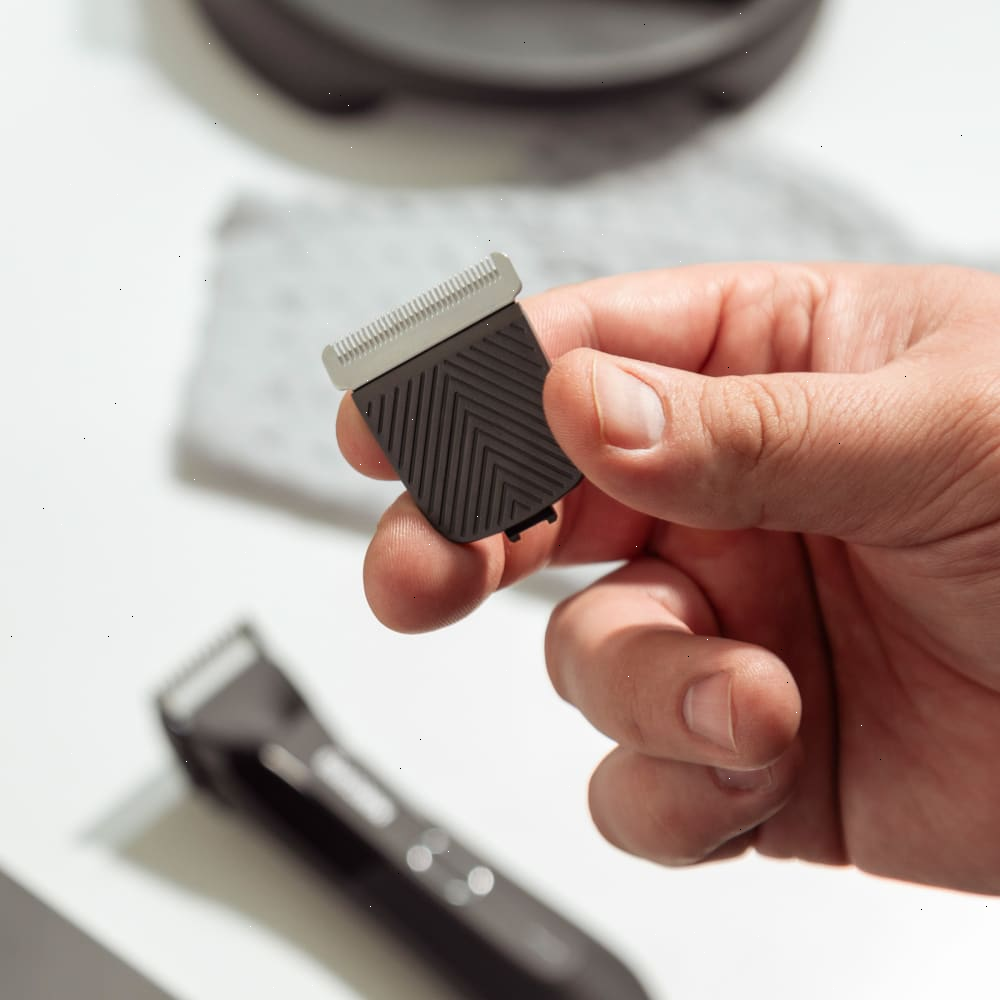 Our updated SkinSafe® trimmer blade for The Lawn Mower® is rounded for comfort with a built-in guard for a smooth glide.